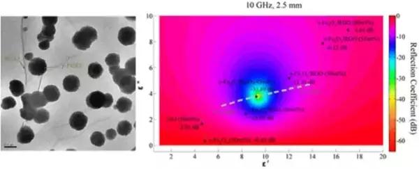 圖7 核殼結(jié)構(gòu)Fe3O4@C復(fù)合材料及其吸波性能