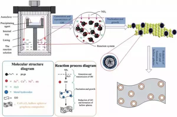 圖10 蒸汽擴(kuò)散法制備CoFe2O4空心球/石墨烯復(fù)合材料及其機(jī)理